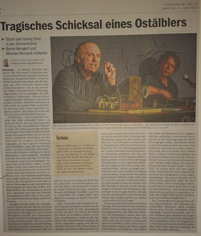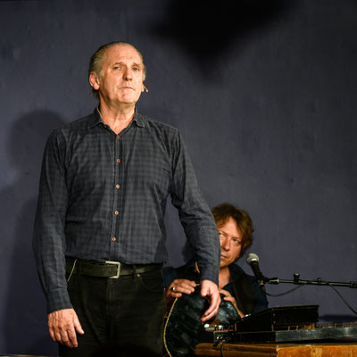 Fotos: Helmut Bär bei der Uraufführung in der ZIMMERBÜHNE im Juni 2023